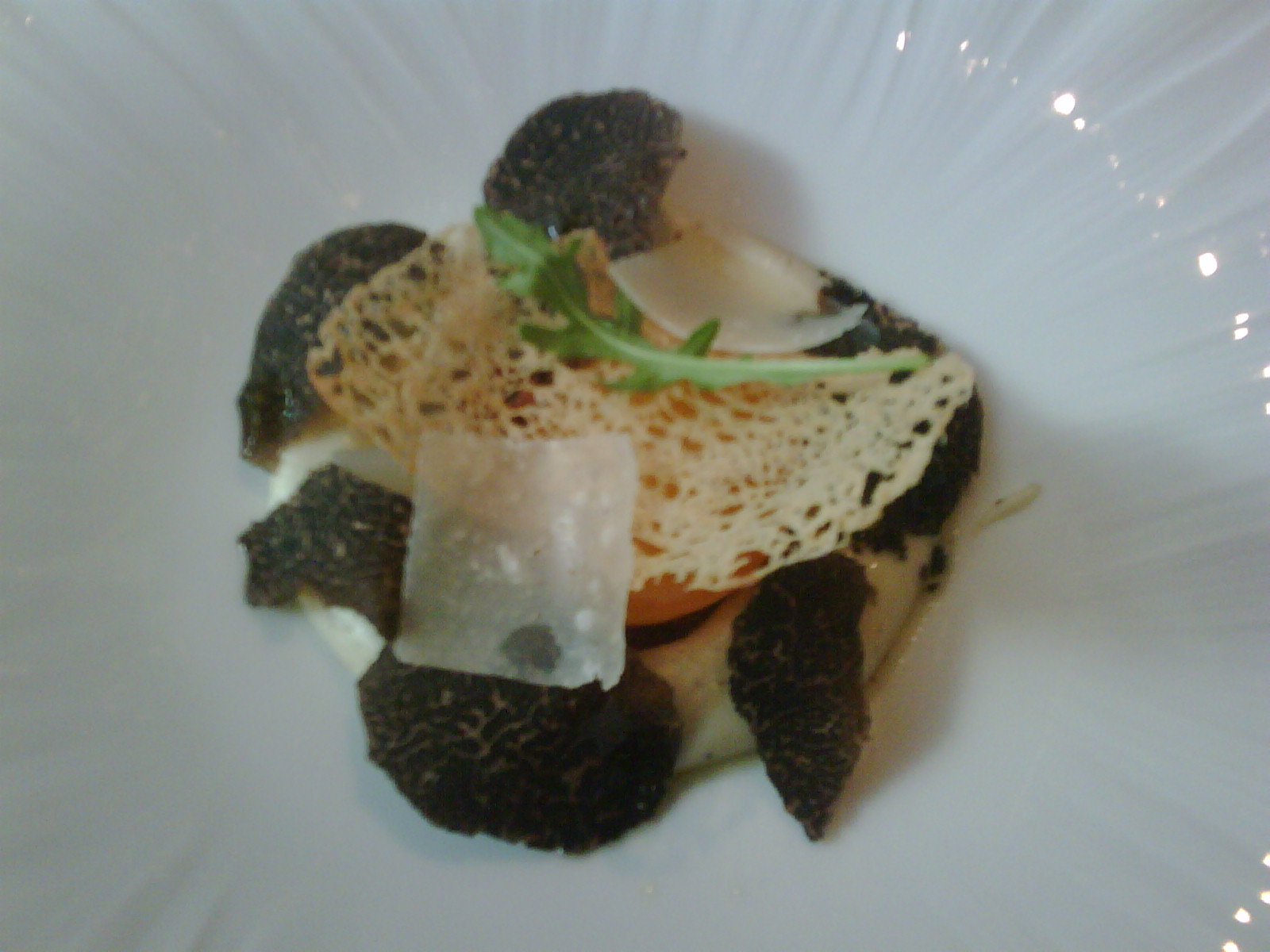 El menú que tuve el placer de degustar estaba adaptado a mis preferencias marinas, y vegetales, por lo como ejemplo me gustaría nombrar por encima las maravillas que degusté: el Gin Fizz cuncúrbita, la nitrogenada piruleta de yogurt salado con caviar iraní, las navajas al vapor, jugo de lichis asados, brotes ácidos, el magnífico tartar de ostras dulces y saladas con criofiltrado de manzana verde, eneldo y salicórneas. La espectacular falsa yema de huevo con Parmentier de patata, trufa negra, parmesano y rúcula