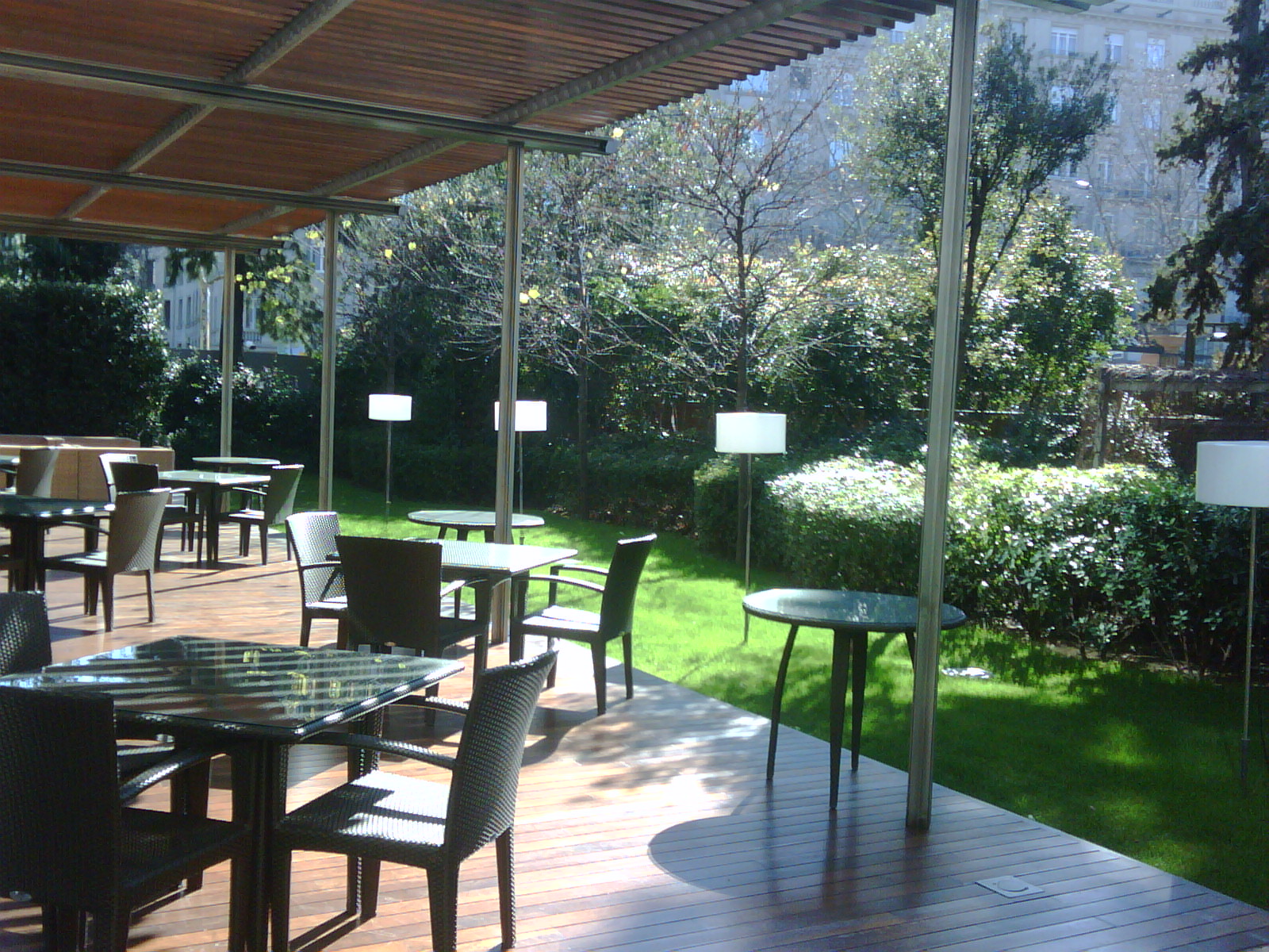 El restaurante tiene una capacidad para 56 comensales en dos comedores con grandes ventanales, contacto directo con el jardín y tonalidades blancas y beige. Mesas ovaladas y vajilla de Versace. Impecable servicio en la sala, atento, multilingüe. Sinceramente su trato me hizo sentirme muy próxima a ellos, sus explicaciones claras y su sonrisa atenta y no sobrepasada.